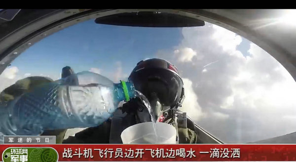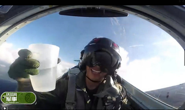 这是在显摆吗?F16飞行员战机翻转时喝水一滴未